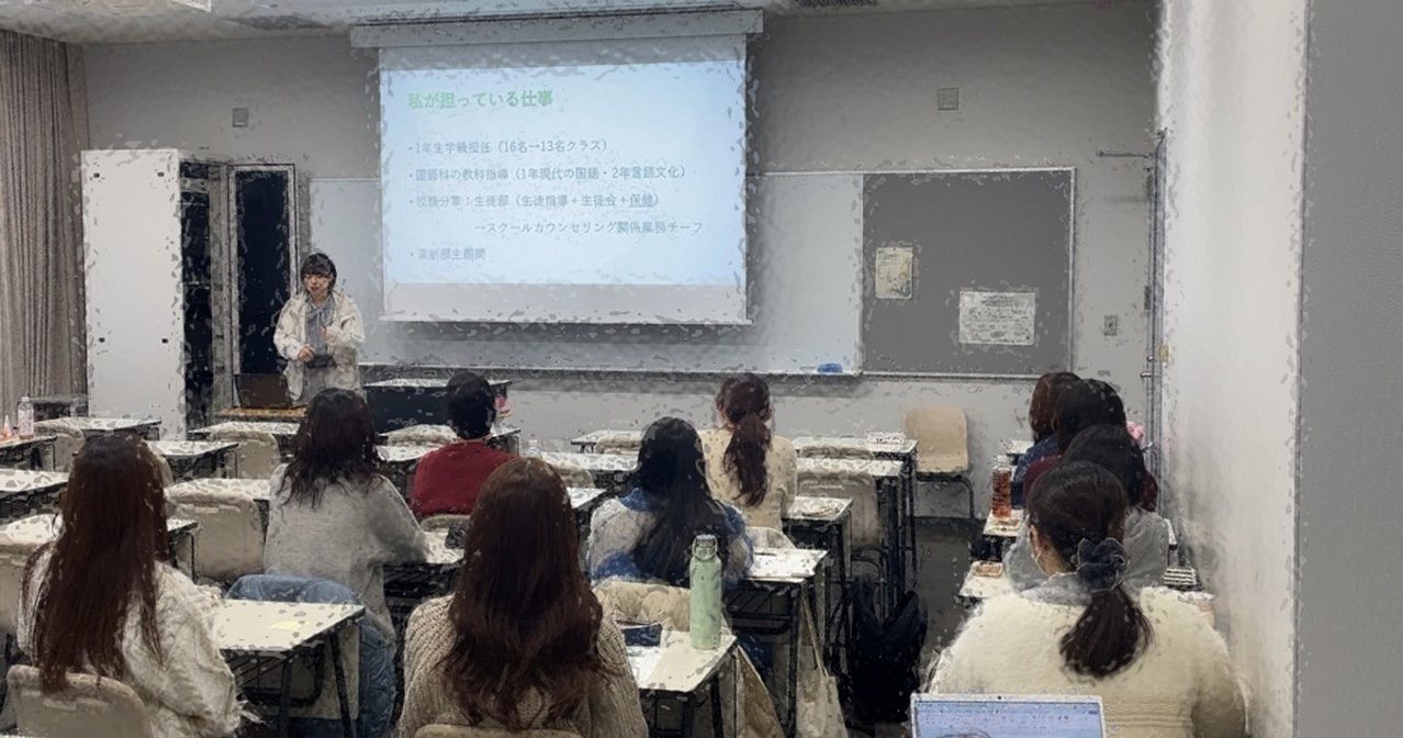 2025年11月28日の2限の授業に愛知県の公立学校で働くベテランの先生に「教職実践演習」の授業の一環としてお越しいただき、示範授業をしていただきました。授業の冒頭で、実際に子どもたちの作文がiPadを介して手元に配布され、その作文を書い …